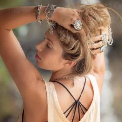 A stunning silver plated bracelet from our beautiful Anatolian collection, with hook and ring closure. Handcrafted in Istanbul by local artisans. Pair with our matching Alucra necklace.