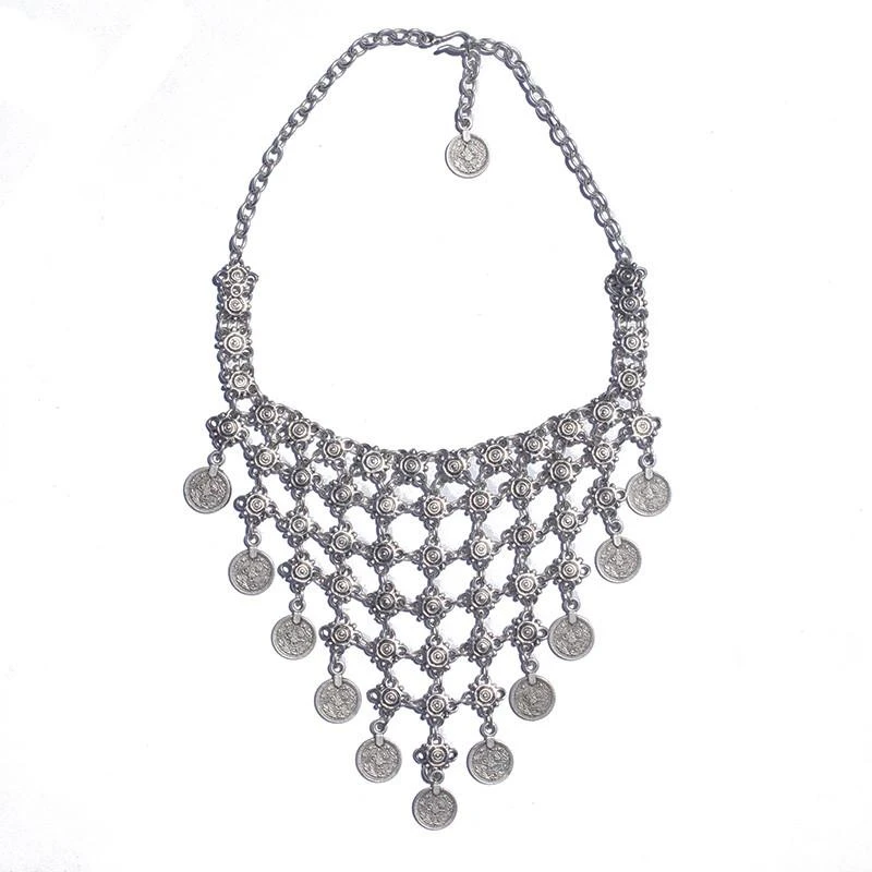 Medallion coin dangle beads on the bottom of each graduated dropped sunshine add another level of enchantment, entrenched by culture and made for everyone who loves a chic statement.