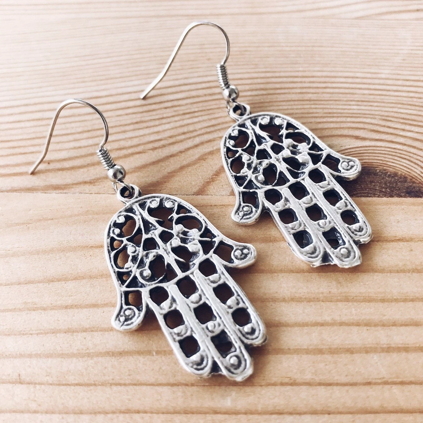 Attract good luck and abundance with our ornate Hamsa Earrings – featuring swirling openwork filigree designs with bead-ball accents.