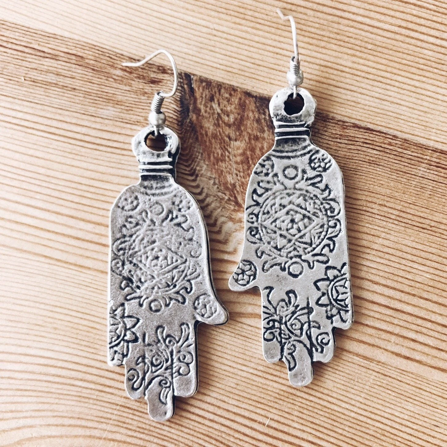 Attract increased fortune and abundance with the power of the hamsa hand, perfect for wearing as a source of powerful spiritual protection. Our Anatolian Earrings – “Ornate Hamsa,” feature vintage ornate hamsas with a worn and “weathered” look, adding an inviting style to these pretty earrings meant to attract money and ward off bad vibes.