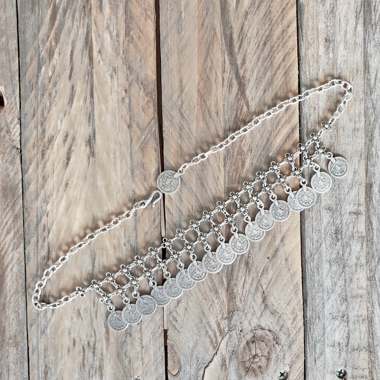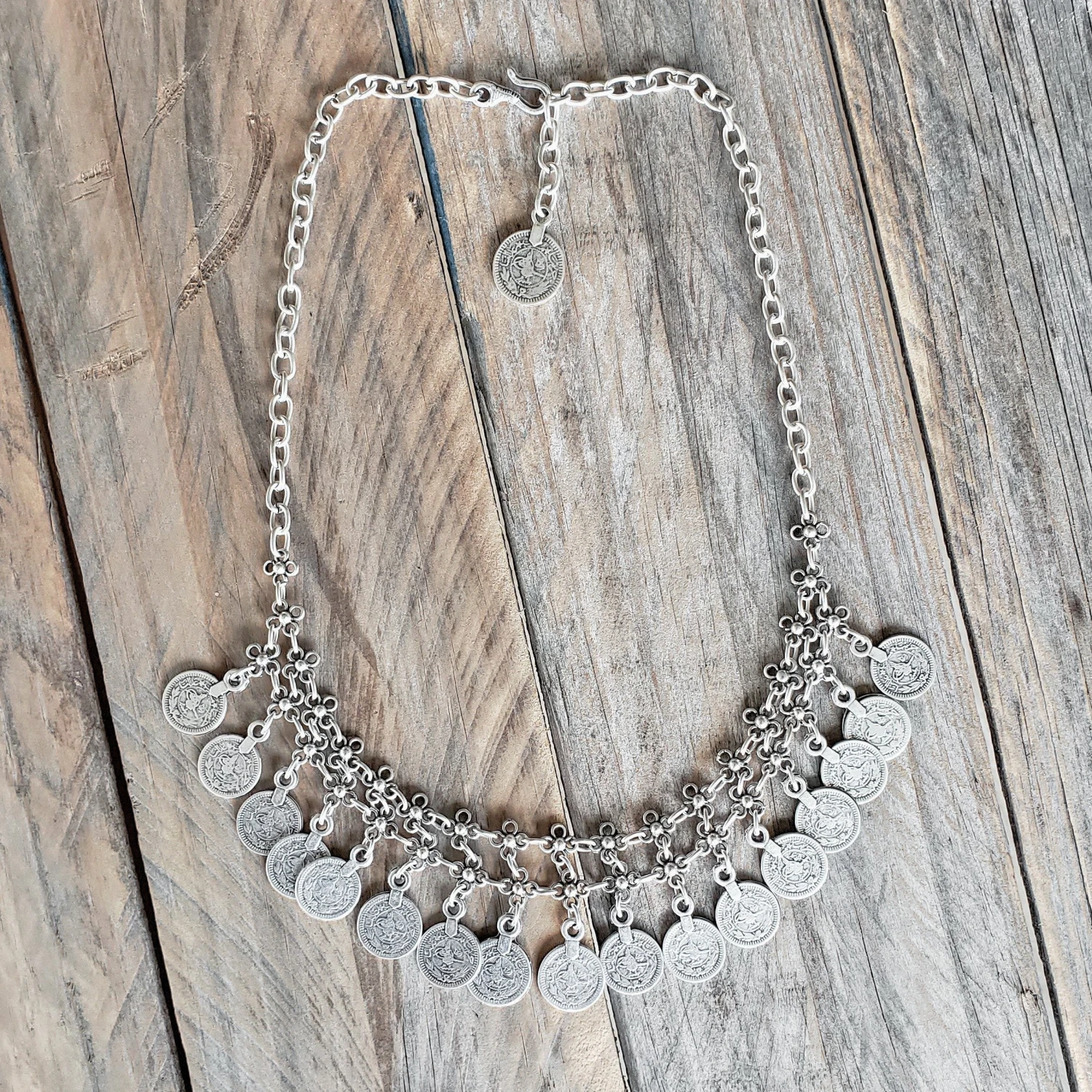 A statement silver plated necklace from our beautiful Anatolian collection, with hook and ring closure. Handcrafted in Istanbul by local artisans.