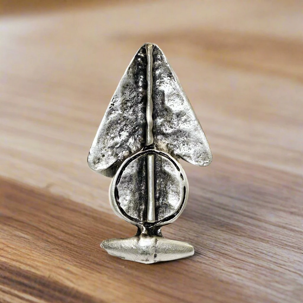 This rustic ring features a statement arrow on the top of a flat edged band, artfully handcrafted with a black antique finish and high shine.Â