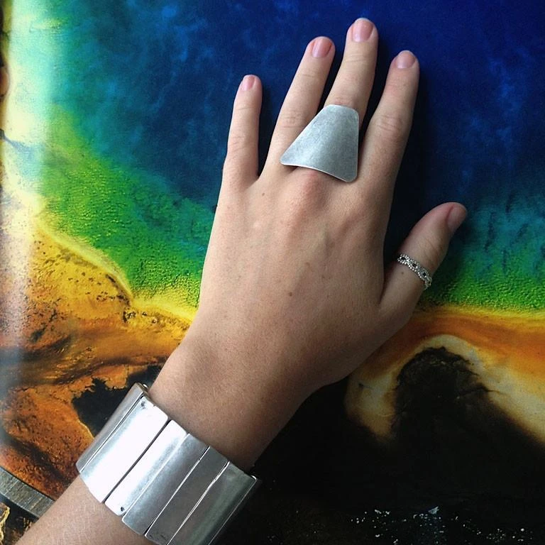 Shield yourself from negativity and bad vibes with our handcrafted ring featuring a geometric “shield” shape denoting a powerful style statement.
