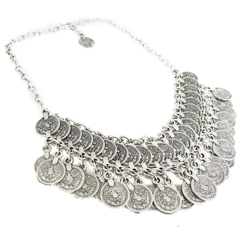 Double the luxury with our Aydos Necklace featuring two rows of highly detailed medallion coin drops set in ring links for a slinky dangle on the front.