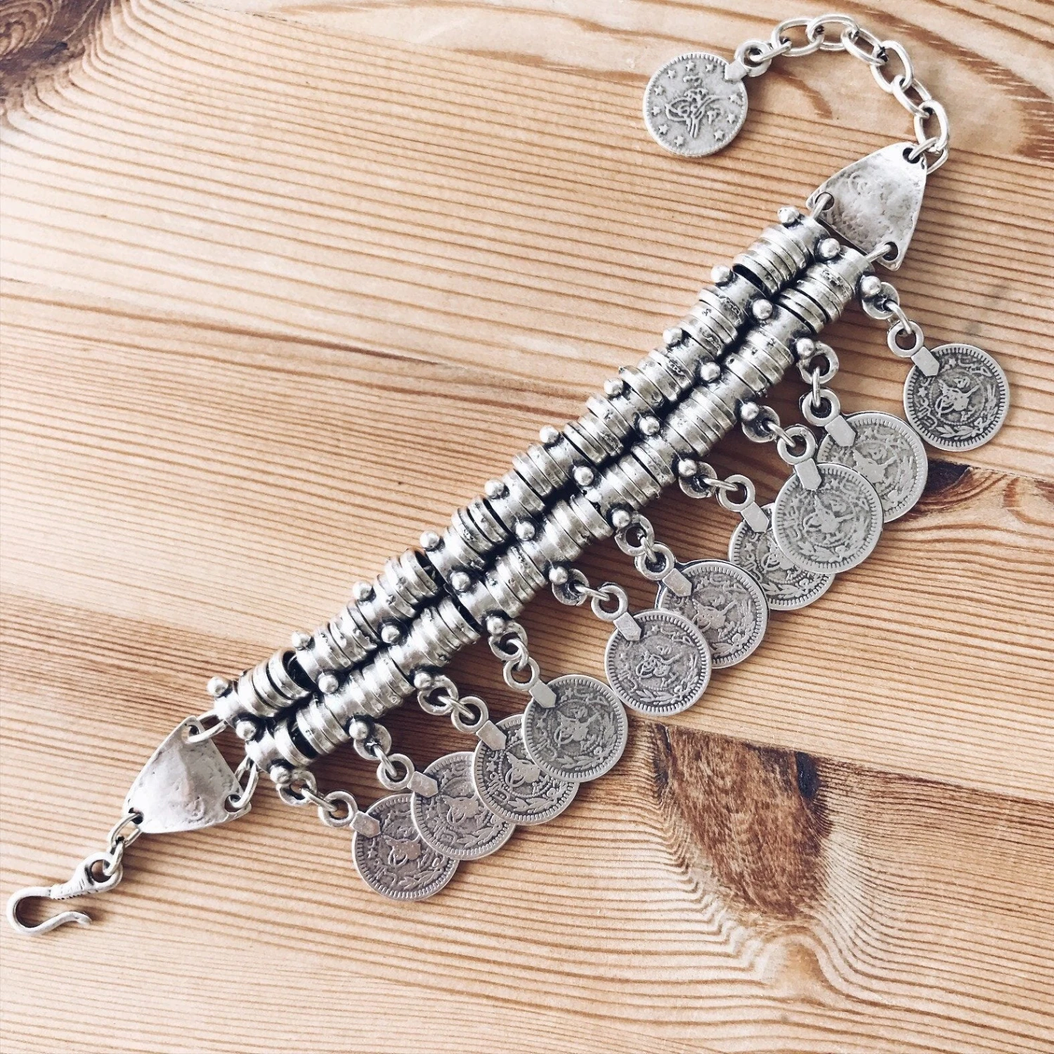 A stunning silver plated bracelet from our beautiful Anatolian collection, with hook and ring closure. Handcrafted in Istanbul by local artisans. Pair with our matching Develi necklace.