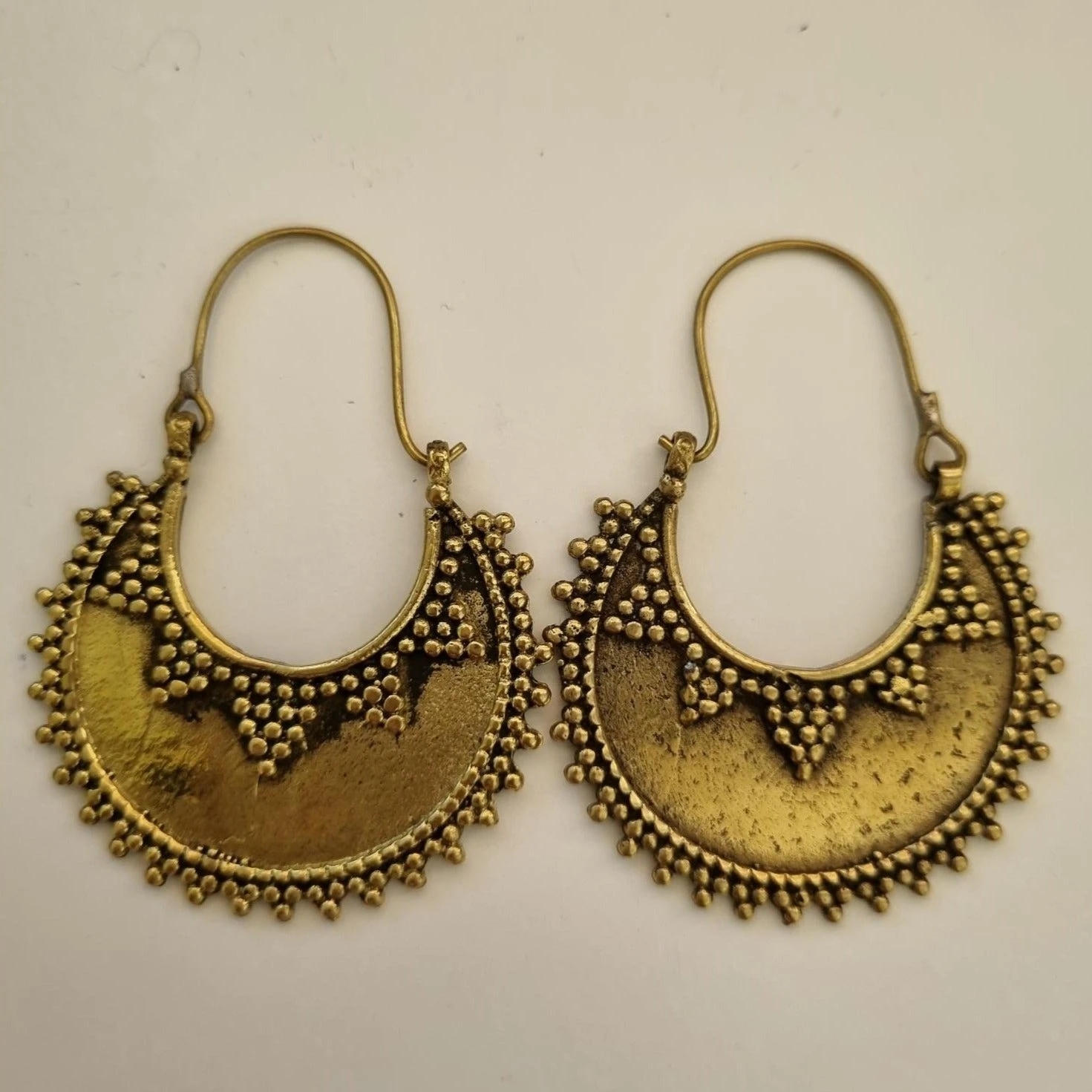 Unleash your inner bohemian goddess with our Gold Gypsy Tribal Hoop Earrings, radiating warmth and sophistication. Elevate your style effortlessly with these stunning, Afghan handcrafted hoops that speak to your free-spirited soul.