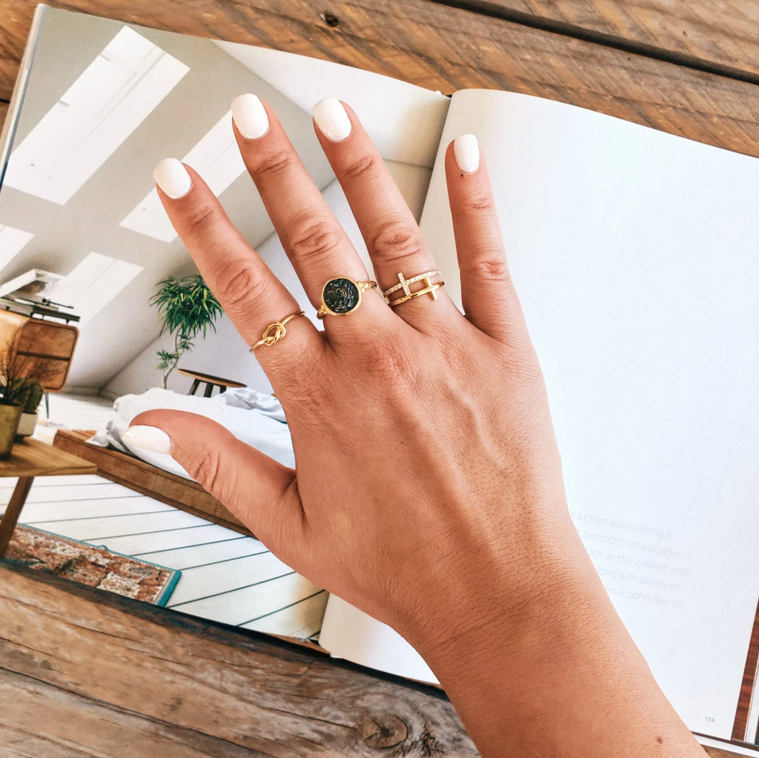 Our Sterling silver, gold plated Hammered Ring features a vintage style Roman medallion. Goes perfectly with our Gold Coin Medallion Necklace.