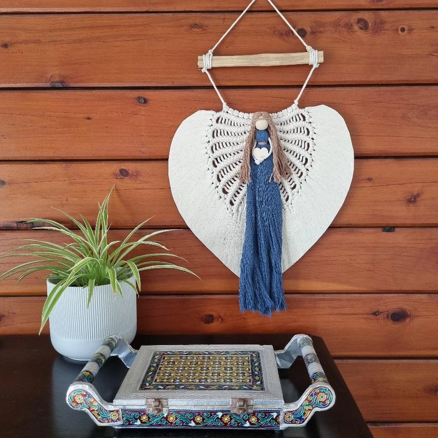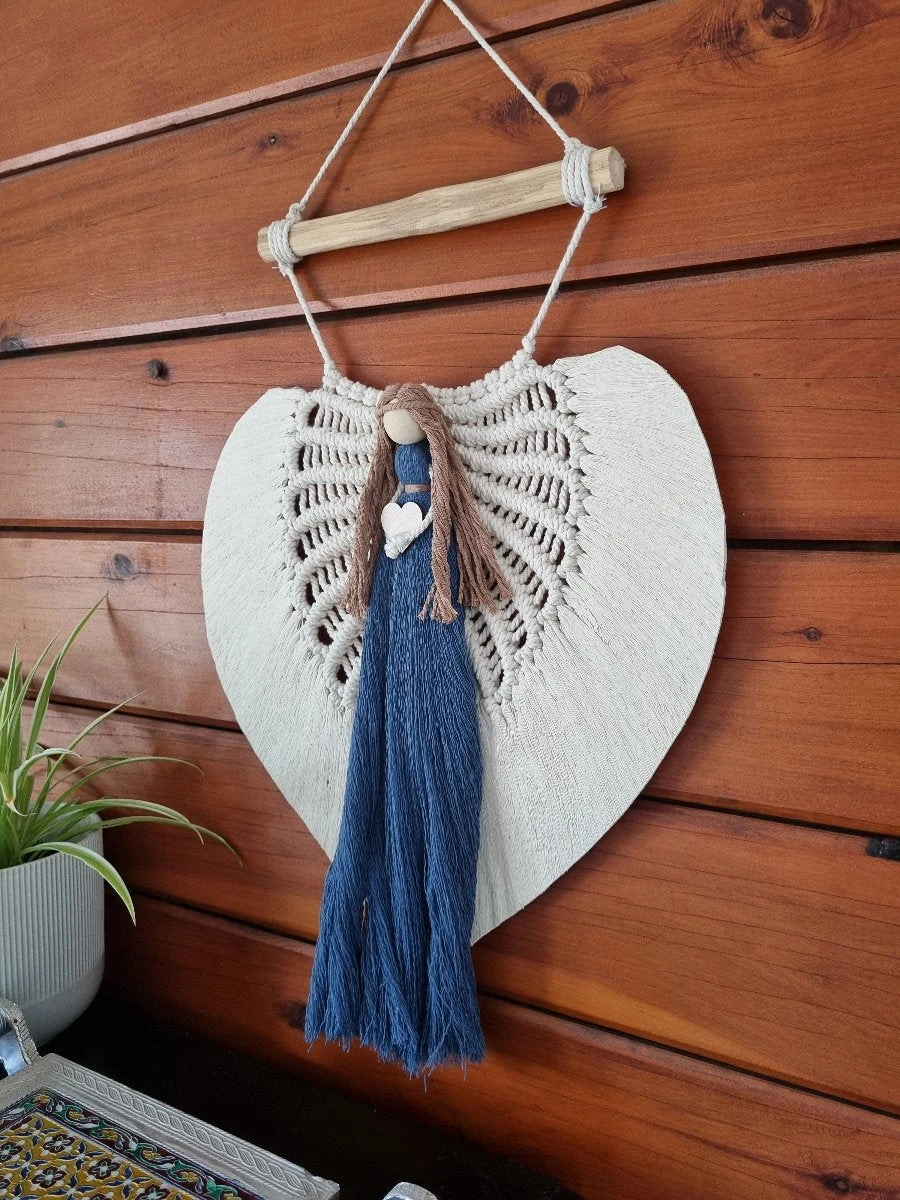 Crafted from soft, natural macrame cotton, these wall hangings add a touch of bohemian elegance and peaceful beauty to any room. Perfect for a bedroom, living room, or nursery, they make a heartfelt gift or a meaningful addition to your boho home decor. Let this angel bring calm, inspiration, and peace to your surroundings.