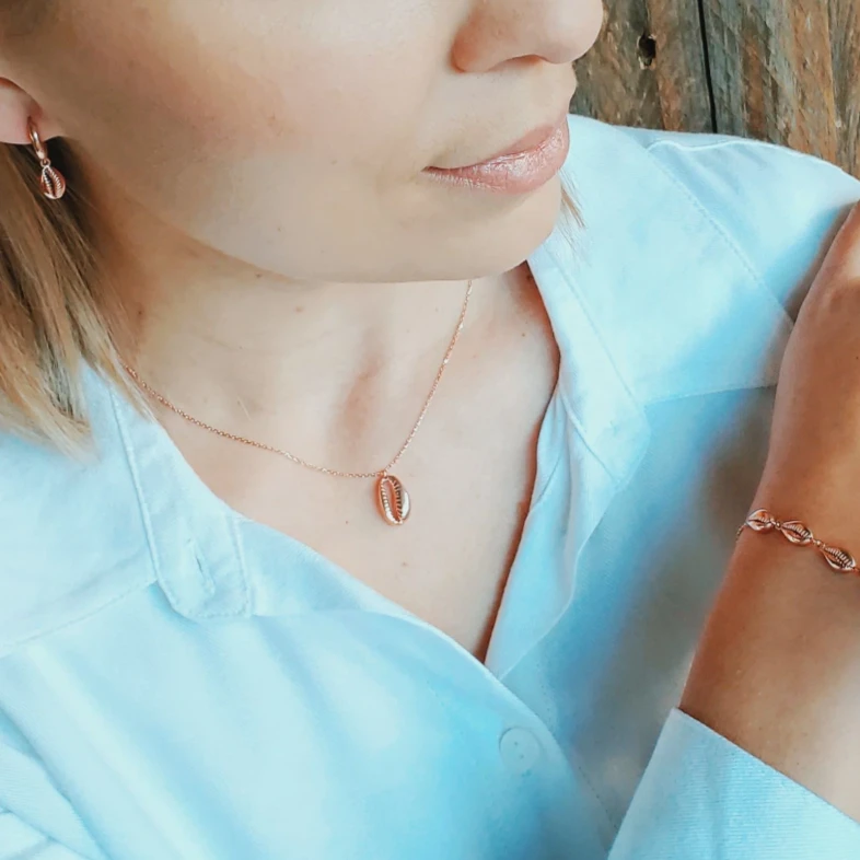 Bundle and save with our beautiful rose gold set of cowrie shell jewellery.