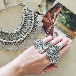 Embody elegance in our sterling silver Golden Goddess ring, the ultimate bohemian cocktail ring.