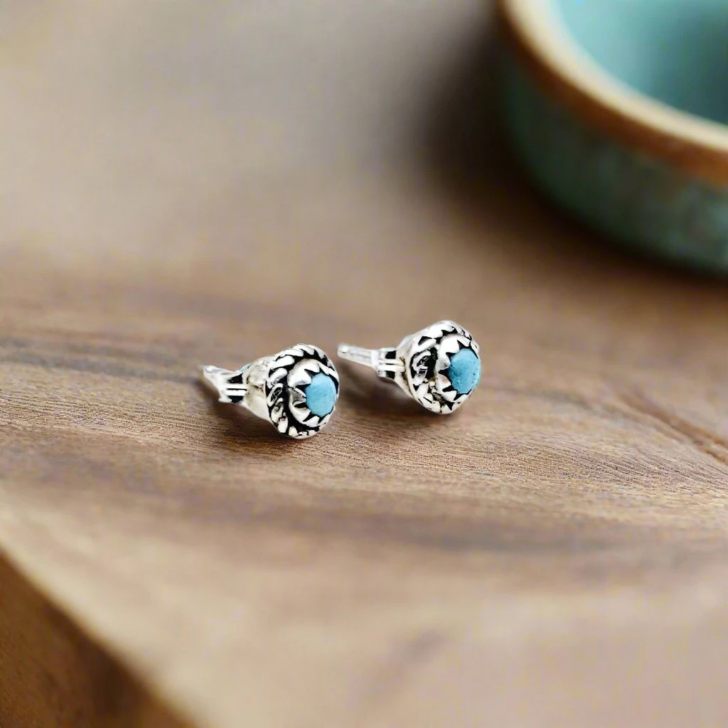 Elevate your style with these exquisite Native American Navajo stud earrings, each handcrafted by the talented artisan Ida McCrae. Made from genuine sterling silver, these round stud earrings are set with natural turquoise stones, radiating a beautiful blue hue unique to this revered gemstone.